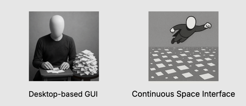 In the real world, you don’t shuffle through sliding windows—you place things in space. Related objects are positioned closer together. You don’t need search bars or hierarchical menus to find your stuff. You just know where things are because of spatial memory.